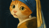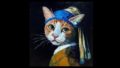 猫に真珠の耳飾り ギャラリー 2025.06.12 フェルメールの「真珠の耳飾りの少女」のオマージュ キャンバスにアクリル絵の具 約15cm×15cm モデル猫は動物保護団体リーフノット様の保護猫、どうちゃん 2025.6.12